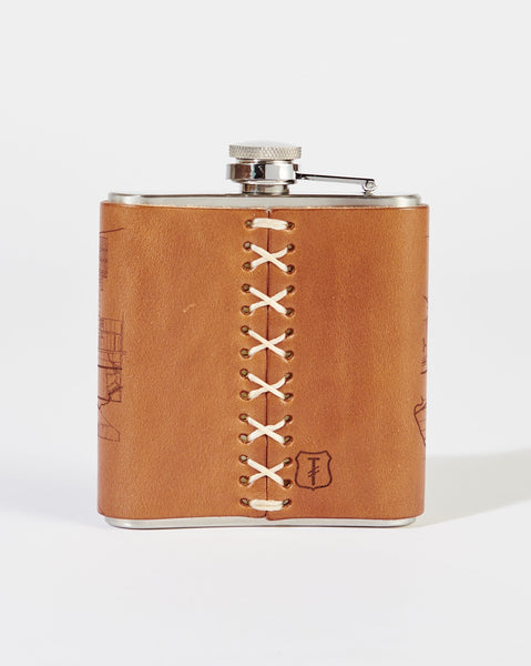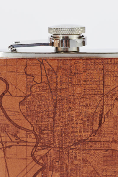 Etched with an 1876 map of Indianapolis, Indiana, this flask is a handsome accessory for any occasion. Whether you carry it in your pack on a camping trip, or slide it into your suit pocket for a night on the town we know you’ll love the substantial feel and rich aroma of the quality leather.