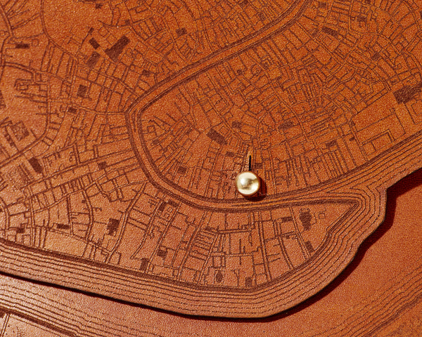 Etched with a 1729 map of Venice, Italy, this clutch is a handsome and practical accessory for any occasion. It will carry your wallet, keys, phone- and anything else you could need for a night out.